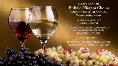 Join the Buffalo Niagara Choirs for their 7th Annual Wine Tasting. Unique wines paired with food, basket raffles, silent auction, and fun!