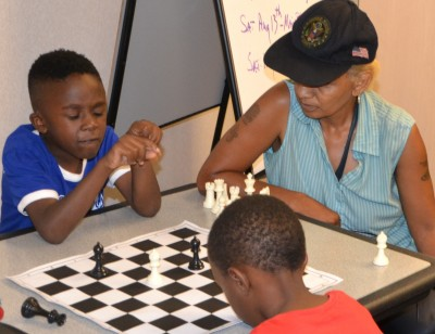 Play friendly, over-the-board chess games with veterans from the Johnetta R. Cole AMVETS Post.