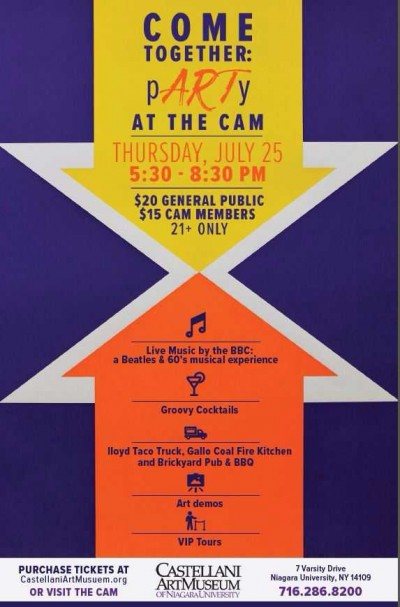 The Castellani Art Museum of Niagara University (CAM) is hosting its inaugural summer event, Come Together: pARTy at the CAM, on Thursday, July 25, 2019 from 5:30-8:30 p.m. This “friend-raiser” encourages first-time and long-standing visitors to enjoy an exciting summer evening on the beautiful campus of Niagara University.