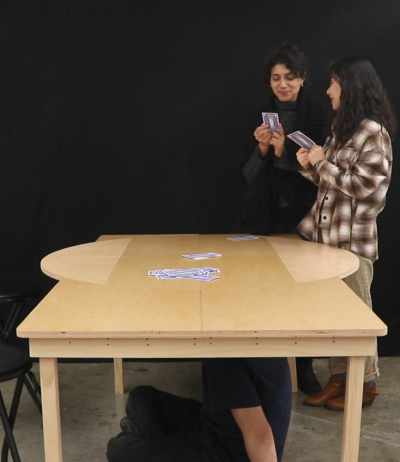 The pieces, thru the formats of interactive sculpture, game and video, invite participants to have their thoughts and conversations redirected in playful and mischievous ways. With perspective askew, the question asked at the outset shifts: you aren’t ‘out of place’ so much as place has been arranged to exclude you. Elston has rearranged the gallery space so that it includes you. The channel of rule-making (the process central to the exhibit’s m.o.) is opened to flow both ways. As it turns out, the physics and metaphysics of control are neither natural, neutral nor stable. Come peek behind the curtain, literally.