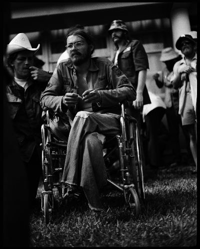 The exhibit features photographs of protests at the 1972 Republican National Convention and the 2004 Democratic and Republican National Conventions. The photographs were shot by photojournalist and Gallery Director Orin Langelle.