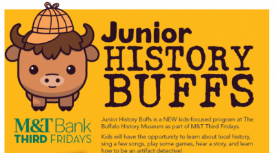 One Museum Court Buffalo, NY 14216unior History Buffs is a program at The Buffalo History Museum that engages children ages 4-9 in age-based lessons. A short program, or “Circle Time,” is instructor-guided and includes songs, a brief lesson about local history and a story. Afterwards, self-guided activities can be enjoyed by the whole family such as crafts, interactive artifact explorations, and exhibit-related games. This program takes place every M&T Bank Third Friday from 10am to 2pm, with circle time at 10:30 a.m.