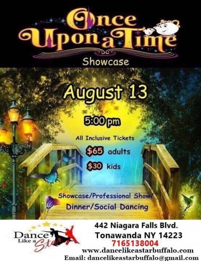 The Dance Like A Star studio will be holding its"Once Upon A Time" Student Showcase on Saturday, August 13th at 5:00pm. Tickets: $65 for adults, $30 for kids, $100 for the VIP table.