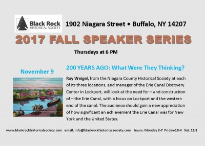 Ray Weigel from the Niagara County Historical Society at each of its three locations, and manager of the Erie Canal Discovery Center in Lockport, will look at the need for – and construction of – the Erie Canal, with a focus on Lockport and the western end of the canal. The audience should gain a new appreciation of how significant an achievement the Erie Canal was for New York and the United States.