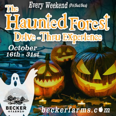 Gasport, NY – Becker Farms re-imagines its Haunted Hayride as a Haunted Forest drive thru experience starting October 16 and running 7:00 p.m. to 10:00 p.m., Friday, Saturday, and Sunday through October 31.