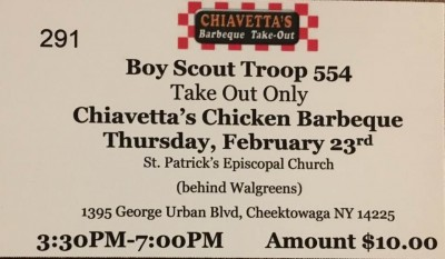 No need to get out of your car... Drive up and let TROOP 554 serve you a hot meal to take home!