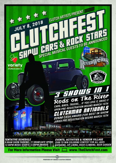 Live bands, headliner to be announced, two car shows in one venue, juried car show and Clutch Artists judged car show.