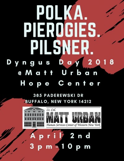 Come celebrate Dyngus Day at the Matt Urban Hope Center. Join us for Polka, Pierogis, and Pilsner. And get a front row seat to the Dyngus Day Parade as it passes by the Central Terminal. Doors open at 3:00 p.m. Admission price is $3.00. All proceeds from admission and food sales go to benefit the programs of the Matt Urban Hope Center.