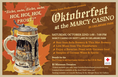 The Oktoberfest at the Marcy Casino will take place on Saturday, October 22nd from 1:00 PM until 7:00 PM at the Marcy Casino in Delaware Park, 199 Lincoln Parkway, Buffalo, NY 14222. Purchased tickets are a donation that goes directly to the American Red Cross. Event tickets can be purchased online at http://octoberfestinthepark.eventbrite.com. A limited number of tickets will be available at the door on the day of the event. A minimum donation of $5 is suggested. For more information on the event call the Marcy Casino at 716. 886.0088 or view online at www.facebook.com/marcycasino.