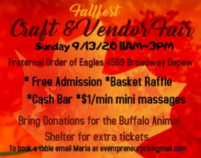 Come on out to support your local small businesses. We have some fabulous and unique crafters as well as some of your favorite vendors too! Looking for something a little different? We have psychic readings and $1/min massages available and a cash bar. FREE ADMISSION. 11AM-3PM. You don't need to be present to win the Basket Raffle. Bring donations for The Buffalo Animal Shelter for extra tickets. To book a table contact Maria eventpreneurpro@gmail.com