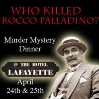 Welcome to the grand opening of the Hotel Lafayette. It’s 1904 and you’re invited to the biggest social event of the season. However, before the night is through, Rocco Palladino will be murdered. You need to collect the clues and find the killer! Your dinner package includes a wine toast, salad, main entrée, dessert and coffee. There are prizes for the winning team that correctly guesses the culprit. Cast members will provide a tour of the Hotel at the conclusion of the performance.