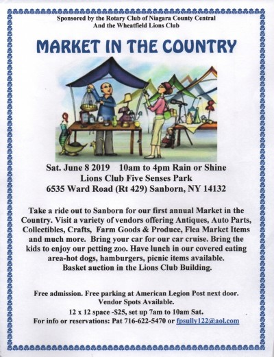12 x 12 space (tables not included) -$25, set up 7am to 10am Sat. For info or reservations: Pat 716-622-5470 or fpsully122@aol.com