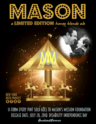 6933 S Transit Rd Lockport, NY 14094NYBP has a very special new release coming up: Mason, a Limited Edition honey blonde ale. This unique Craft ale was brewed in honor of Mason’s Mission- a truly inspirational local organization who believes every child has the right to play. The foundation has built Mason’s Mission Playground, the wonderful inclusive playground in the city of Pendleton, and $1 from every pint sold of this beer will go towards the playground’s addition of the nation’s first inclusive carousel. The words “limited edition” refer to the way that Jason and Jennifer Evchich (founders of Mason’s Mission and parents to Mason, Matthew & McKenna ) call their amazing sons.