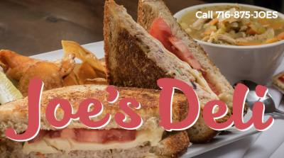 Buffalonian Joe Lyons opened the first Joe’s Deli in 2006 on the corner of Hertel & Colvin Avenues; the same spot that was once was home to legendary New York-style deli, Mastman’s Delicatessen. The deli launched with a menu offering traditional deli favorites as well as unique, eclectic choices for the more adventurous appetite. Joe Lyons and family opened their second Joe’s Deli location at 534 Elmwood in the summer of 2013 and the Maple Road location in Williamsville in May 2017. Their newest location is set to open November 2017 in the Oshei Children’s Hospital. The Buffalo Catering Company, a subsidiary of the Joe’s family, was founded in 2009, delivering fresh, full-service custom catering for groups and events. In addition to many award-winning sandwiches and soups, Joe’s Deli offers daily specials customized for each location and always “made fresh for you.”