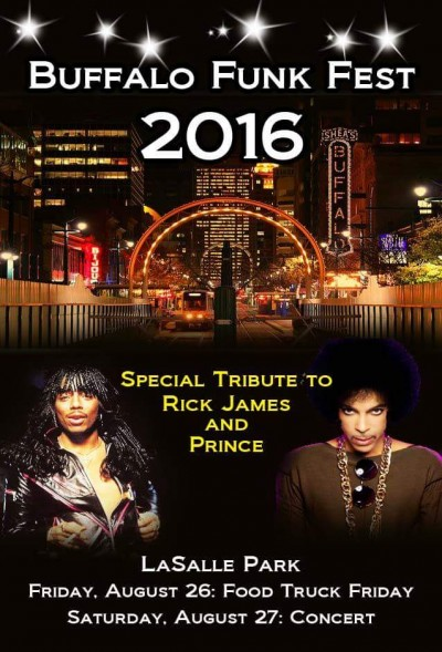 The music is sure to bring you to your feet. Bring a blanket or lawn chairs to enjoy a free concert with musical tributes to the legendary icon Prince and beloved Buffalo funk music icon Rick James. Enjoy food trucks and other vendors while grooving to funk music!