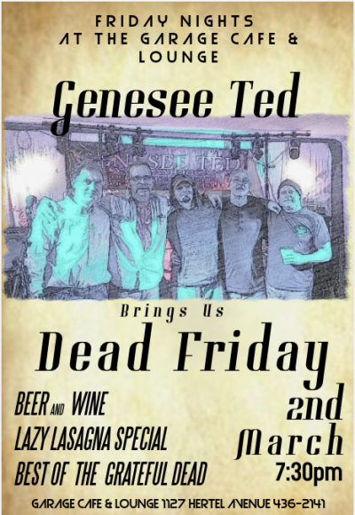 Come join us at The Garage Cafe & Lounge for a night of the Grateful Dead by the band Genesee Ted!