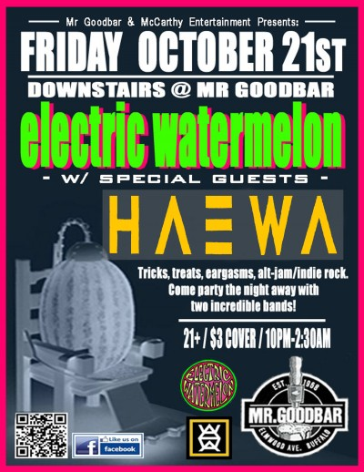 Tricks, treats, eargasms, alt-jam/indie rock. Come party the night away with Electric Watermelon and special guests from Rochester, Haewa!