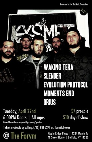 Coming from just south of DC is Woodbridge, VA metal band Kysmet. They carry along one simple message with them "Live life with passion." With their high octane energetic style of metal they carry out their message through action. Musically they are able to bring their own individual raw emotions out by blending fast thrash-metal like riffs with melodic harmonies and catchy one-liners through-out the songs. Live, they are a barrage of energy that is constantly hitting the audience that never seems to cease from start to finish. Whether it's a small bar or a large-scale stage, when Kysmet hits the stage, you know it.