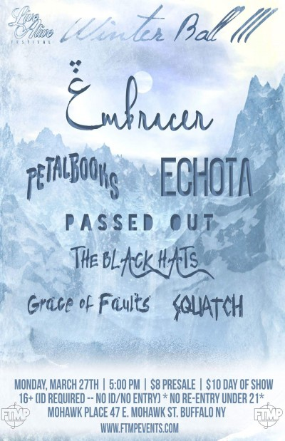 Featuring: Embracer (WV), Petal Books, Passed Out, Grace of Faults, Echota, The Black Hats & Squatch