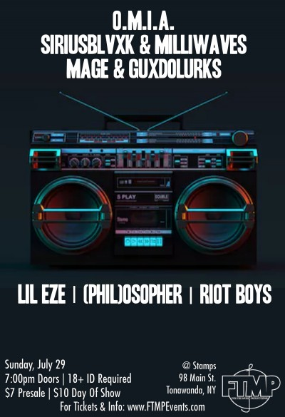 O.M.I.A. (Neff, Parallel, & Paradigm), Siriusblvxk and Milliwaves, Mage and Guxdolurks, Lil Eze, (Phil)osopher, & Riot Boys