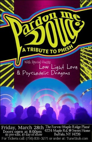 Pardon Me, Doug is a premier Phish tribute band formed in the fall of 2012 by Portland, Maine music scene veterans, Benny St. Clair, Kevin Roper, Chris Chasse and Cameron Gray. They have quickly amounted a loyal following of their own fellow Phish fans, who like themselves, need their fix when Phish isn't on tour. With a catalogue of over 100 Phish songs, no Pardon Me, Doug show is the same and the jams are a perfect blend of years of Phish influence and their own takes on the high energy improvisation that Phish is so well known for. A Pardon Me, Doug show is not just a concert. It is an experience! Close your eyes and you just may think you're at the real thing!