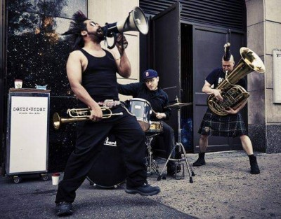 Meet the brass band that no one wants parading down their street. Despite having a deep respect for both Louis Armstrong and Nirvana; the Stumblebums reject nostalgia in favor of riotous spontaneity. Too punk for guitars and amps, The Stumblebums are known for ambushing innocent subway passengers and crashing bars with their post apocalyptic Lower East Side punk brass sound.