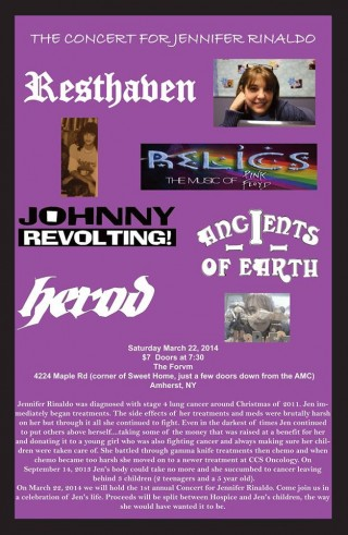 On March 22, 2014 we will hold the 1st annual Concert for Jennifer Rinaldo. Come join us in a celebration of Jen's life. Proceeds will be split between Hospice and Jen's children, the way she would have wanted it to be.