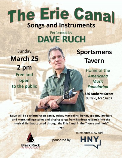 Dave Ruch will be performing on banjo, guitar, mandolins, bones, spoons, jaw harp and more, telling stories and singing songs from his deep research into the musical life that coursed through the Erie Canal in the "horse and mule" days.