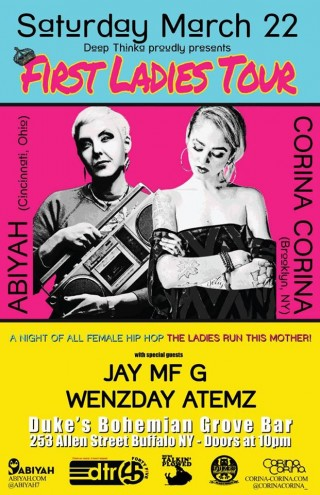 Cincinnati-based indie hip hop/cross-genre vocalist/MC ABIYAH and Brooklyn-based electro-soul vocalist CORINA CORINA join forces to embark on a 13-day tour from the East Coast to the Midwest in March 2014.