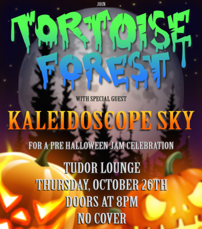 Tortoise Forest kicks off Halloween with a night of good vibes and good jams, featuring our good friends Kaleidoscope Sky! Come by, have a drink and let the progressive grooves scare you silly! No Cover, come enjoy some drinks and some music!
