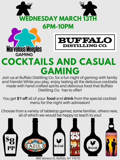 Join us at Buffalo Distilling Co. for a fun night of gaming with family and friends! While you play, enjoy tasting all the delicious cocktails made with hand-crafted spirits and delicious food that Buffalo Distilling Co. has to offer!