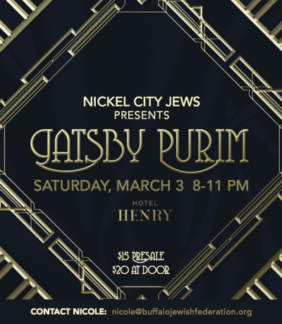 Celebrate Purim, one of the most joyous Jewish holidays, at the Nickel City Jew’s Gatsby Purim Party!