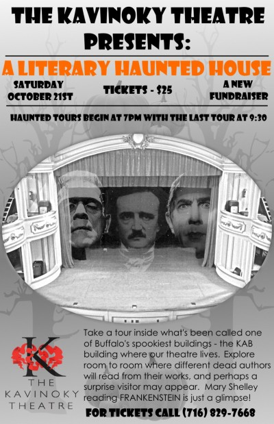 The Literary Haunted House is The Kavinoky Theatre’s newest (and scariest) fundraiser and a great way to visit The Kavinoky Theatre, explore the historic KAB, and support our theater. Please join us at this exciting event.