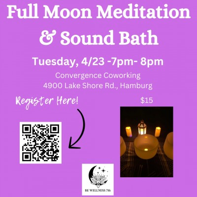 4900 Lake Shore Road Hamburg, NY 14075Join me for a rejuvenating meditation and sound bath at Convergence Coworking in Hamburg.Our session begins with a nurturing guided meditation, preparing you for a inner exploration of inner peace and self-discovery. Embrace the therapeutic vibrations of crystal singing bowls, Tibetan singing bowls, gong, and an array of sound healing instruments. This Meditation Sound Bath encourages you to let go of the past and embrace the fresh, burgeoning possibilities of the new season.This gathering is designed for everyone, from novices to seasoned enthusiasts seeking a refreshing experience. It's a chance to connect, reflect, and enjoy tranquility in the company of like-minded individuals.What to Bring:
