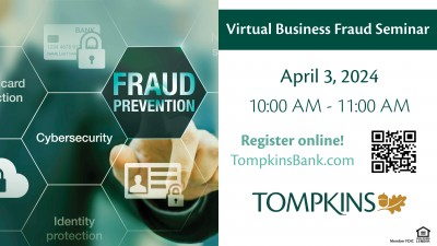 Join Tompkins Community Bank for a discussion on how to best protect your business from fraud. You will learn about the current risk and threat landscape for businesses as it pertains to payment fraud and fraud prevention, in addition to ways to proactively protect your business.