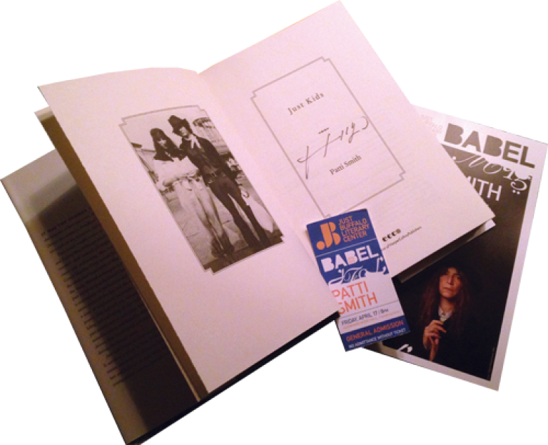 For the first time in a long while it seems, Babel had an author willing to give more than prepared statements probably shared the week before in another city and again a week later somewhere else. Smith’s talk was stream of consciousness—or at the very least it felt like it was. We received personal facts like Mapplethorpe’s last words to her before succumbing to complications from AIDS (“Would you write our story?”) and Lou Reed passing her on the street for the last time saying, “I love you, Patti.” We heard about her cultured parents reading Plato to guests in their lower middle class neighborhood—friends to all who were nice people—and her mother giving couples entrenched in the AIDS epidemic with nowhere else to go sanctuary while tirelessly replying to all Patti’s fan mail.