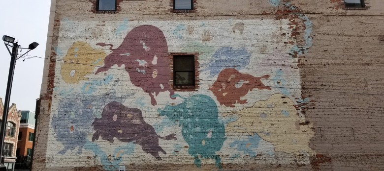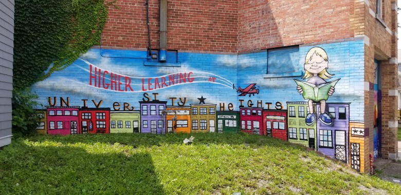 Quick disclaimer: These ones aren’t technically on Main Street. While they do grace the exterior of Talking Leaves Books, you’ll have to walk down Northrup Street to get to them. First, you’ll find Higher Learning at University Heights, a vibrant mural evoking memories of elementary school days and childlike imagination.