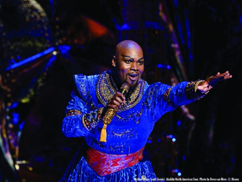 There is no doubt that a very talented creative team with 20 Tony awards among them, plus a very large Disney budget, are responsible for this feel-good, highly energetic, glittering production based on the 1992 movie. And I do mean glittering. There are 8,644 Swarovski rhinestones on each man’s gold finale costume in Act One's “Friend Like Me.” And that’s just a handful of the 337 costumes in the show. The actors sparkle and shine throughout. Even the Genie has sparkles on his bald head.