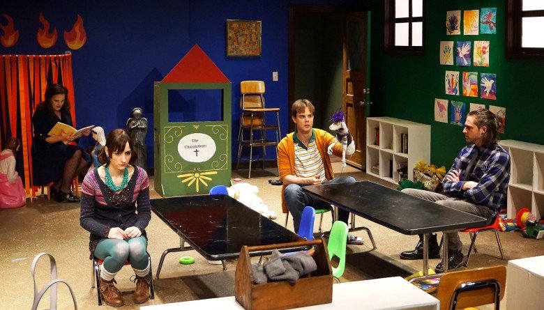 Kudos to Director John Hurley and his production team. Dyan Burlingame's set is a perfect church basement classroom, with colorful child-sized tables and chairs. Props Master Diane Almeter Jones has assembled a plethora of toys and stuffed animals for the room and added some unorthodox touches. Adam Kreutinger designed the terific puppets. Fight Direction by Adam Rath is realistic and somewhat bloody.