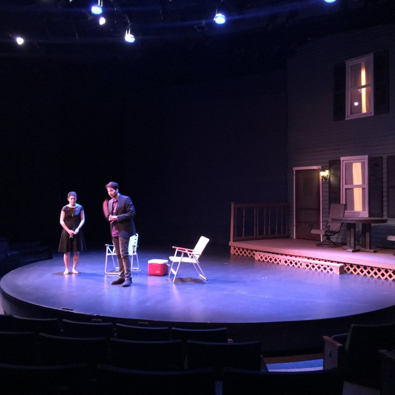 The set by Jeff A. Ramirez is a simple deck and backyard of a house in Chicago. There are no distractions from the dialogue as the four characters talk, argue, and occasionally laugh their way through this engrossing play. The audience is drawn into Catherine’s predicament. How will she find her way back into the world after leaving school and isolating herself to care for her father? Will she go mad as her father did? And what of the mathematical proof that Hal finds in one of Robert’s notebooks tucked away in a locked desk drawer to which Catherine has given him the key?