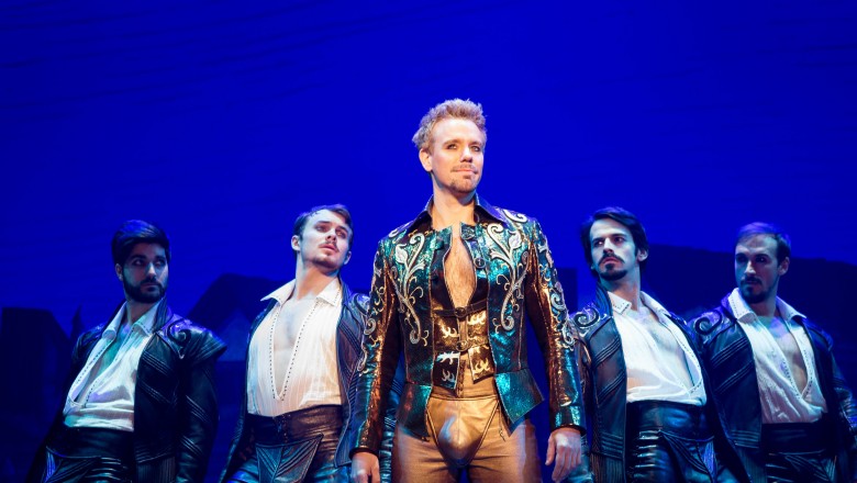 That is the setup for this fast-paced, silly, zany sendup of musicals, theatrical rivalries, psychics, adoring fans, and whatever else brothers Karey and Wayne Kirkpatrick, who conceived the musical, could toss into the mix. It is replete with double-entendres, wordplay, and parody, along with the largest codpieces in men-in-tights history, Mel Brooks notwithstanding.