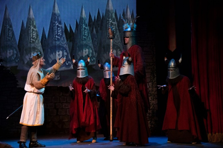 Director and Choreographer Lynne Kurdziel Formato has assembled a first-rate cast and crew to bring to the stage a fast-paced production that would make its creator proud. Eric Idle, he of Monty Python fame, wrote the book and lyrics based on the 1975 movie parody of the King Arthur legend, Monty Python and the Holy Grail. It follows a rather clueless King Arthur, first in search of brave knights for his round table, and then in search of the Holy Grail itself. Along the way, with his sidekick Patsy who keeps him on point, he encounters various unusual beings who either assist or hinder his quest, as he moves between the Middle Ages and the present, with a quick stop in Buffalo.