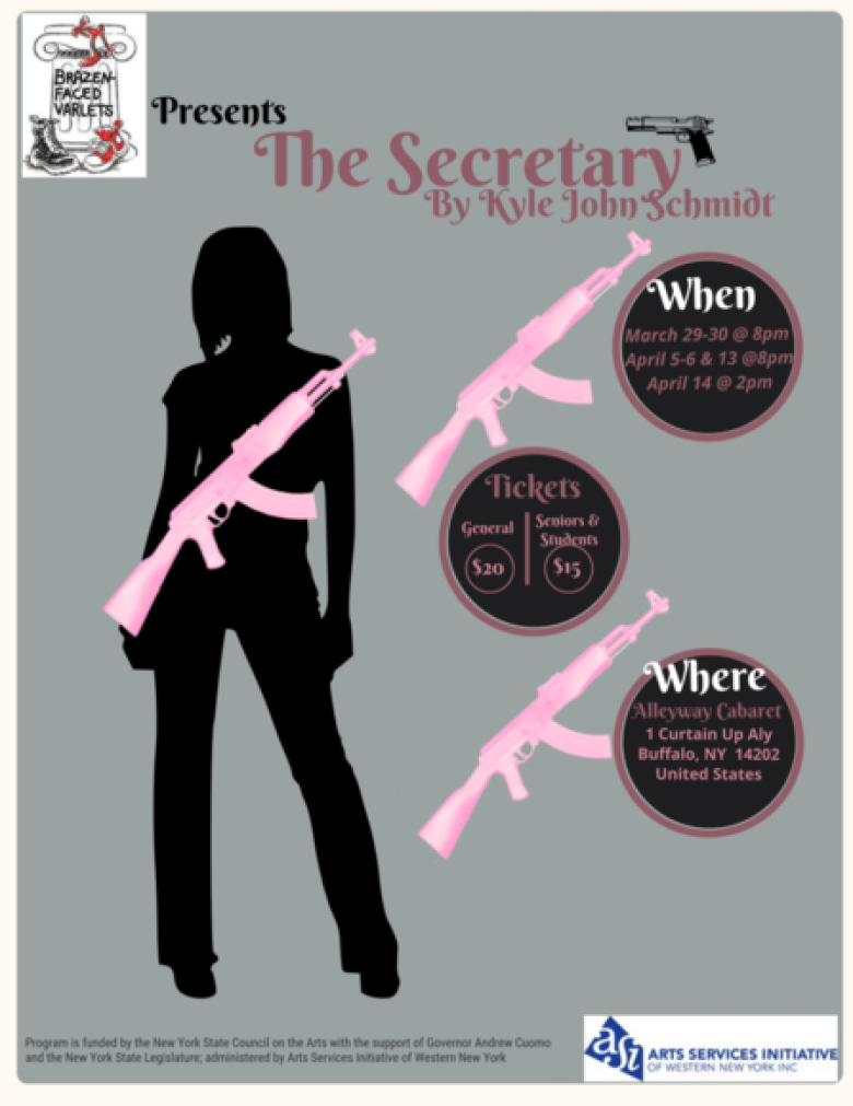 The NRA would have us believe that “Guns don’t kill people. People kill people.” In The Secretary, a black comedy that dissects the American love and hate affair with guns, playwright Kyle John Schmidt turns that slogan 180 degrees and takes us on a funny, sad, and scary journey that is unnerving, to say the least. What if guns do kill people...?