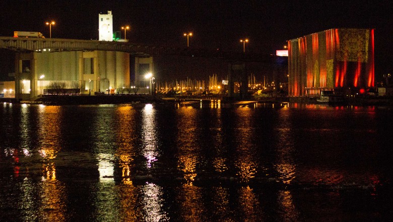 Grain Elevator Light Display - The façade of this vacant architectural icon fills with light every evening, all year round, from nightfall until 11:00pm. Stand or sit on the boardwalk with views of Lake Erie at Canalside or the Outer Harbor. This unique light sculpture, designed by Ambiances Design Productions, displays the four seasons with special light displays on holidays.