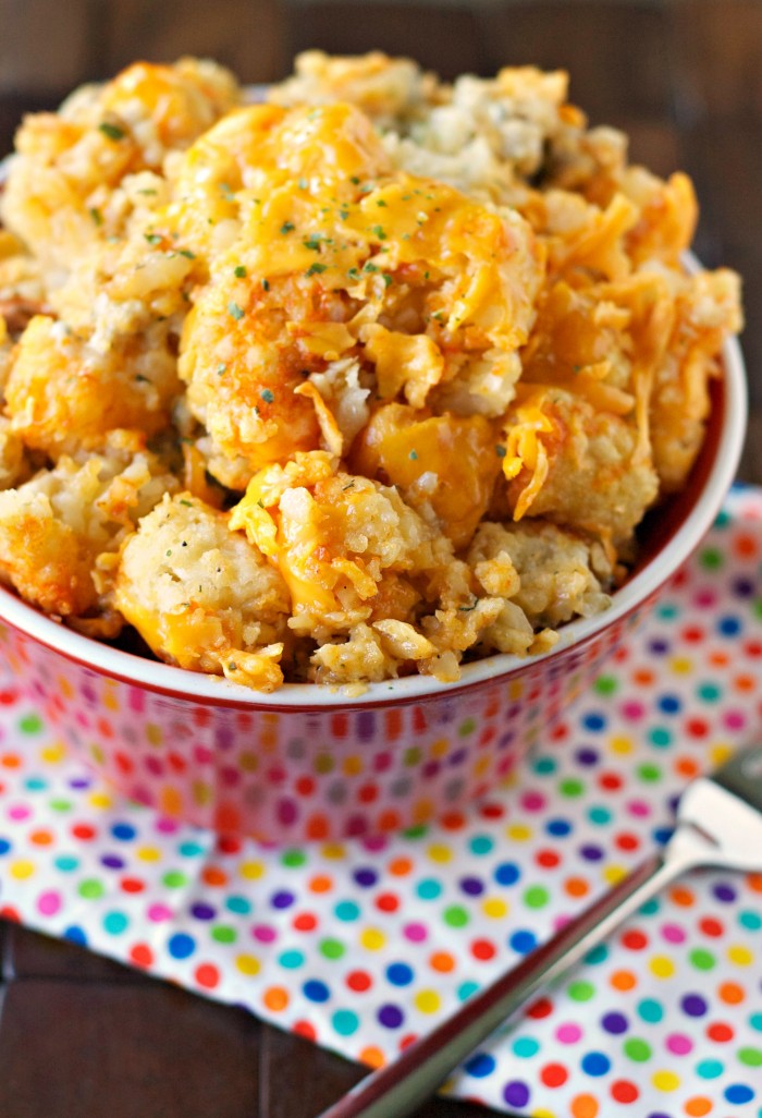 Crockpot Buffalo Chicken Tater Tot Casserole