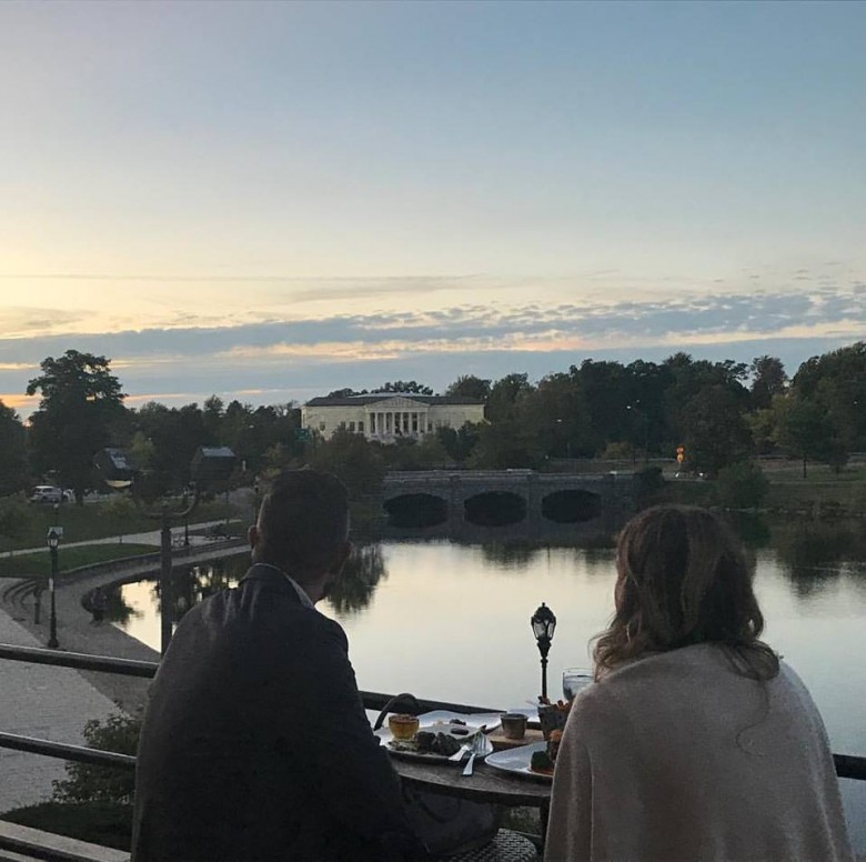 I've saved the best for last. It's where I chose to celebrate my birthday last year, and I'm making a birthday dinner reservations there for this year, too. How can you possibly surpass dinner and drinks on the terrace of the Marcy Casino in Delaware Park overlooking Hoyt Lake? The food is lovely, of course, but I go there for the view. Here's an important tip to get the most out of this extraordinary venue: make your reservation (and be certain to make a reservation!) timed for about half an hour before sunset and specifiy outdoor seating. If you're truly fortunate you will be seated near the railing, but all outdoor seats feature the sun setting behind the Albright-Knox and the lights brilliantly illuminating the Buffalo History Museum. Simply magical.