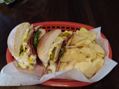 During a recent visit for lunch I was all set to order off the regular menu, however the list of daily specials caught my eye, (Joe’s always has a large selection of daily soups, sandwiches, wraps, and appetizers). I went with a roasted pork sandwich with red onions, avocado, and cheese on ciabatta bread. It was simply delicious, and a perfect portion to allow me to get back to the office and be productive, avoiding the dreaded food coma. The pork was tender, moist, and seasoned to perfection. The red onions were pickled, and added a subtle sweet tartness that mixed well with the roasted pork. The classic deli potato chips were a perfect accompaniment, and left me wondering, why can’t the chips I buy at home taste like this? My companion opted for a Joe’s original, The Hangover. Yes this sandwich will cure what ails you. This mountain of fried capicola, provolone, sautéed onions, cherry peppers, with lettuce, tomato, mayo, and topped with a fried egg is not for the faint of heart. I had one bite, and my taste buds were bursting and craving more. The companion described the sandwich, make that meal, as fried deliciousness with an egg for good measure, and that’s good enough for me.