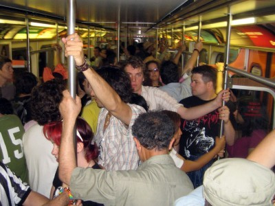 The degree of pushing on the metro during rush hour here was so shocking that when I first felt myself physically shoved into the wagon I thought I was going to have to fight with whoever was doing the pushing. My first experience was in Moscow, where the pushing was so hard that I ended up hanging over the benches with my legs several feet behind me, completely off balance. I had to hold on to the safety bar with all my strength, otherwise I would have fallen onto the lap of the unfortunate person below me.