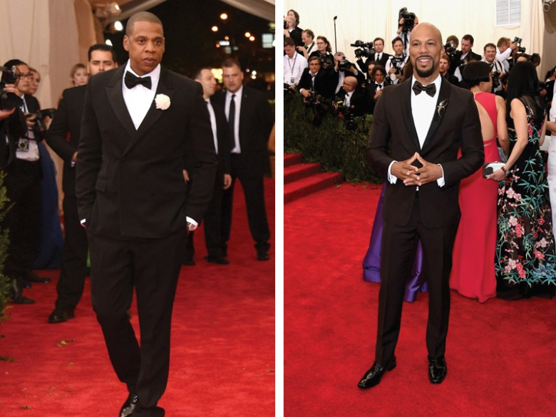 Of course when it comes to tuxes, you can never go wrong with the classics. There are plenty of ways to put your own stamp on it though, whether it be a pop boutonniere or simply mixing up the shape with a double breasted jacket like the one worn by Jay Z. Common, yet another style icon and continually one of my favorites, has the perfect fit, look and his own flair with his custom lapel pin.