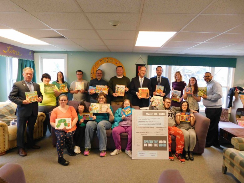 Representatives of People Inc., Dog Ears Bookstore & Café and several elected officials gathered at the South Buffalo bookstore on March 28 in celebration of Disability Awareness Month. Dog Ears and People Inc. have partnered to deliver books to senior living apartments throughout Western New York, as well as programs that help participants with job readiness skills.
